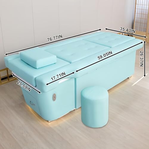 - Blue Luxury Style:Shampoo bed adopts unique mint blue.The overall shape is simple and smooth,creating a soft and comfortable visual experience.Hidden foot bathtub design combines modern aesthetics and practicality to bring you a new comfortable experience